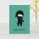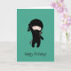 Tiny Happy Ninja on Dark Green Birthday Card