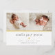 Sweet and elegant birth announcement features two newborn photos aligned side by side, with a band of gold foil beneath. Personalise with baby's name, birth stats, and a family message, adorned with a small gold foil heart.