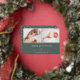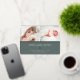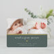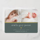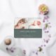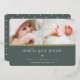 Sweet and elegant birth announcement features two newborn photos aligned side by side, with a band of gold foil beneath. Personalise with baby's name, birth stats, and a family message, adorned with a small gold foil heart on a forest green background.