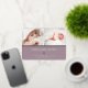 Sweet and elegant birth announcement features two newborn photos aligned side by side, with a band of rose gold foil beneath. Personalise with baby's name, birth stats, and a family message, adorned with a small rose gold foil heart on a dusty purple background.