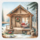 Tiny Home Log Cabin in the Winter Woods Christmas Square Sticker