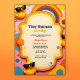 Get ready to celebrate with sunshine, style, and a splash of humour using this Tiny Human Shindig Baby Shower Invitation! This bold and colourful design features retro rainbow curves, playful daisies, and cool rubber duckies wearing sunglasses—perfect for welcoming a new arrival with good vibes and laughter.