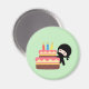 Tiny Ninja Behind Birthday Cake Green Magnet
