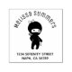 Cute cartoon ninja girl is dressed all in black but for a small bow on top of her head mask. Traditional Japanese sword katana can be seen attached over her shoulder. Customisable text.