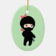 Cute cartoon ninja girl is dressed all in black but for a pink bow on top of her head mask. Traditional Japanese sword katana can be seen attached over her shoulder, it’s handle also coloured pink.