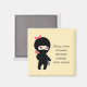 Cute cartoon ninja girl is dressed all in black but for a pink bow on top of her head mask. Traditional Japanese sword katana can be seen attached over her shoulder, it’s handle also coloured pink.