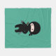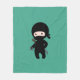 Tiny Ninja Holding Throwing Star On Dark Green Fleece Blanket
