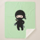 Tiny Ninja Holding Throwing Star on Green Sherpa Blanket
