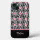 This floral design features tiny pink and grey roses on a zebra-like black and white swirl for a look that mixes vintage romance with a slightly wilder, contemporary side. Your name or initials appears in pink on a colour block of black at the bottom of the design. Make sure to type the text you want in the Personalise section.