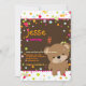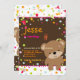 Teddy bear and colourful polka dots, flowers and stars birthday party invitations.
