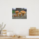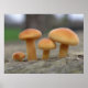 This beautiful poster features a beautifully detailed photograph of 4 small yellow toadstools emerging from a log in a park. The background is blurred and the fungi are photographed level so you see the world from their perspective.
