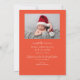 Elegant and modern Christmas theme birth announcement card featuring a typography text that says "tiny toes big joy." This is a birth announcement card for the holiday seasons! Add your photos, birth stats, and a message! The background is red.