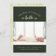 Affordable custom printed baby birth announcement photo cards. This sweet gender neutral design has a minimalist typography layout with "hello" calligraphy and green watercolor botanical accents. Personalise the design with baby's name, birthday and birth stats and newborn photo. Reverse side has an abstract watercolor pattern with space to add additional text and photos. Click Customise It to edit the text fonts and colours and add more photos to create unique one of a kind photo birth announcements for baby boy or girl.