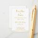 Tiny white and golden Great Gatsby wedding invitations business cards, when the bride and groom are hosting, with changeable text