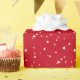 An elegant pattern of small, delicate white stars on a traditional Christmas red background.