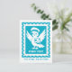 Our little postbird and mascot is featured on this teal postage stamp design with her name "Penny Post", wearing a postman's hat and holding a postcard with a heart. "Tiny Wings, Big Journeys" is written as a cute message at the bottom of the postcard! Great for kids - just adorable!