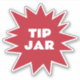 Tip Jar label for bar, restaurant, or other business says Tip Jar in a bold white font on an attention getting red starburst background.