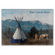 A scene from the Pacific Northwest region of the United States featuring an image of a Native American and his horse near a tipi. Snow has settled on the higher slopes of the mountains in the background. Add your own text.