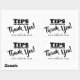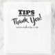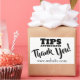 "Tips Appreciated" gratuities jar rectangle sticker with website link.