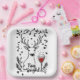 A funny and cheerful Christmas holiday design showcases an outline of a deer surrounded by snowflakes and fern branches. Beside the branches sits a glass of red wine. The handwritten text reads, "Tipsy and bright." This design is featured on a variety of products, making it a perfect gift for wine lovers.