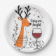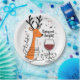A funny and cheerful Christmas holiday design showcases a reindeer wrapped in festive lights, holding a glass of red wine, surrounded by colourful stars. The handwritten text says, "Tipsy and Bright." This delightful design is available on a variety of products, making it a perfect gift for wine lovers.