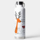 A funny and cheerful Christmas holiday design showcases a reindeer wrapped in festive lights, holding a glass of red wine, surrounded by colourful stars. The handwritten text says, "Tipsy and Bright." This delightful design is available on a variety of products, making it a perfect gift for wine lovers.