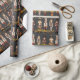 Tiptop Nutcracker Kings Musical Staff Wrapping Paper adds a sophisticated, festive flair to any holiday gift. Featuring a rich dark grey background, this wrapping paper is decorated with elegant nutcracker soliders in shimmering uniforms, creating a luxurious contrast. The design includes a group of intricately illustrated Nutcracker Kings, each in radiant golden attire and hats, embodying a joyful holiday spirit. Perfect for those who appreciate a modern and refined holiday aesthetic, this wrapping paper brings an enchanting, upscale touch to gift-giving, making your presents stand out with timeless elegance and festive charm.