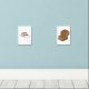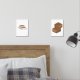 A wall art set of a plate of tiramisu at the left and brownies at the right.
