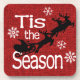 Beautiful coaster has the words in white "Tis the Season" with white snowflakes, a black sled with reindeer all on a red faux linen design. Makes a Great Hostess Gift! Go ahead and put a SMILE on their face!