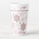 Create your own unique latte mug for the winter holiday season. The sample wording reads "'tis the season for christmas spiced lattes" and you can keep or edit this as you wish. Elegant, festive design with a pattern of snowflakes in red and pink.