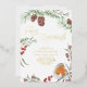 Tis the Season to be Married bridal shower invitation with luxury gold foil typography, traditional winter nature theme and elegant calligraphy. Design features watercolor Christmas robin, pine branches, greenery, winter berries and pine cones. Tis the season to be married is lettered in handwritten typography and the template is ready for you to add your shower invite details.