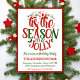 Embrace the magic of the season with this simple and festive Christmas party invitation that exudes holiday cheer with it's classically traditional design. The phrase "Tis the season to be jolly" is playfully scripted in a lively red and green lettering, enticing guests with the promise of laughter, good company and seasonal treats. Personalise by filling in your event details and this card will beckon recipients to gather and share in the joy of the holiday season.