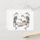 Charming Design: This postcard features a delightful ensemble of Halloween icons. Two dancing skeletons decked in their skeletal finest take centre stage, adding a touch of whimsy to your greetings.