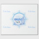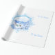 This image is designed with a blue and white snowflake and in the centre is an ice skating pond surrounded by trees decorated with snow. The houses are seen in the backround. The children are enjoying a day on the pond. Tis the season is printed on the sides of the paper. A blue or white backround is available. This wrapping paper is available in assorted styles. Customise to your liking.