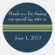 A band of green and white stripes pop on this navy blue sticker. These are a great idea for party favours.