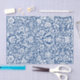 Decorative Victorian vintage antique ornamental white line art floral design line art flourish set on Chathams blue.