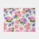 Watercolor pattern with various flowers and blue tit bird painted with watercolors.