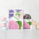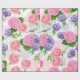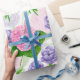 Watercolor pattern with various flowers and blue tit bird painted with watercolors.