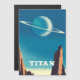 Titan & The ringed planet Saturn Vintage Style Space Art.