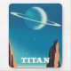 Titan & The ringed planet Saturn Vintage Style Space Art.