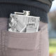 The flask itself is fine. It’s a cheap flask, obviously bought in bulk, however am prepared to overlook that. Given that it is a personalized item, I would have liked to have seen gift boxing instead of the generic packaging. Terrible printing, and/or quality. It’s a cheap, tacky vinyl. It is not cut straight and is also applied in a way that it is overhanging the bottom, causing the glue to catch on items and it will eventually roll and tear, damaging the wrap.