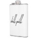 The flask itself is fine. It’s a cheap flask, obviously bought in bulk, however am prepared to overlook that. Given that it is a personalized item, I would have liked to have seen gift boxing instead of the generic packaging. Terrible printing, and/or quality. It’s a cheap, tacky vinyl. It is not cut straight and is also applied in a way that it is overhanging the bottom, causing the glue to catch on items and it will eventually roll and tear, damaging the wrap.