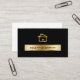 Classy Real Estate title company business card template including a gold coloured company name emblem digitally printed on the front, along with modern business card layout in a two side design with house symbol.