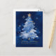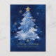 Send elegant holiday greetings with this stunning navy blue Christmas card featuring a watercolor Christmas tree wrapped in golden ribbon and topped with a gold star. Surrounded by delicate gold snowflakes on a deep blue background, this design exudes refined winter elegance. Perfect for sending warm holiday wishes from an individual, couple, or family who loves timeless and classy Christmas designs.