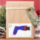 Add cute to from stickers with a painting of an adorable black cat, kitten, coming out of a red and blue Christmas stocking. There are also snowflakes as part of this winter scene. This is a larger sticker and is rectangle in shape, purr-fect for larger presents.