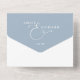 This all-in-one minimalist wedding invitation features elegant typography on a dusty blue background. The invitation includes a perforated RSVP card that can be individually addressed or left blank so you can handwrite your guest's address details. Designed by Thisisnotme©