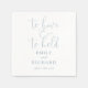 This dusty blue elegant script wedding napkin can be personalised with all your names and special date. Designed by Thisisnotme©