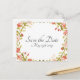 "To have and to hold from this day forward...as long as we both shall live." The vows and red flower wreaths form two rings that link together and adorn this simple yet elegant wedding "Save the Date" postcard. The front has a simple spray of flowers, "Save the Date" and the wedding date. Personalise the front and back with your own information.