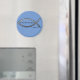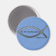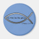 Standard, 21/4'', round magnet with blue background colour reflects that. The Ichthys/ Ichthus (fish outline) is the secret symbol Early Christians used to refer to Jesus Christ.