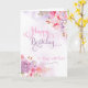 Pinkish/purple floral watercolor & washes on the front of card has "Happy Birthday to Mum, with love" in a beautiful, swirly font. Designed by Simply Put by Robin using elements from The Hungry Jpeg.